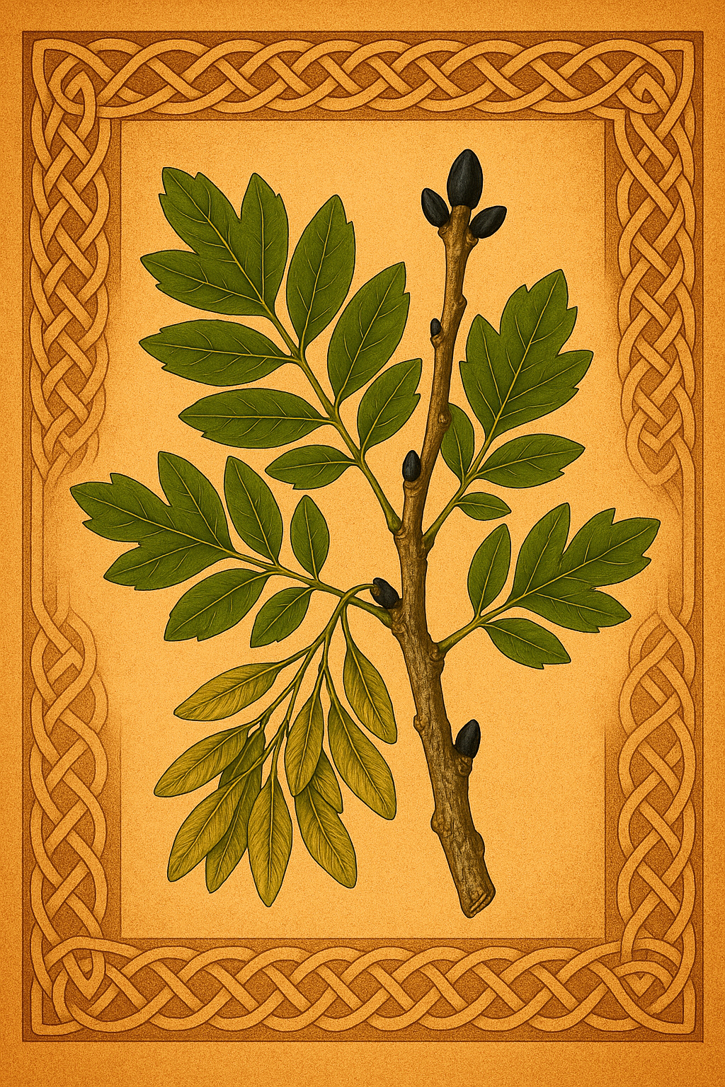 Ash is the great World Tree of the Celts - Yggdrasil to the Norse, Nuin in the Ogham — bridging Heaven, Earth, and Underworld. It stands between fire and water, the masculine and feminine, the seen and unseen. To the Druids, it was the living conduit of life-force itself - the channel through which the breath of creation moves.